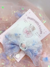 【現品即納】ブルー×レース×リボン おリボンのヘアゴム